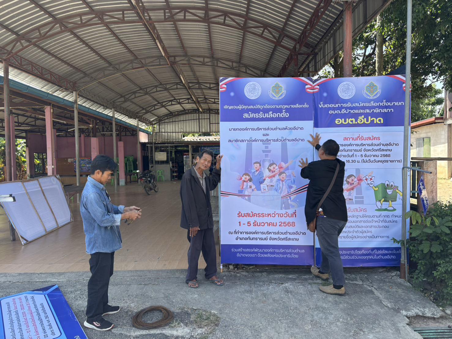 วันที่ 28 พฤศจิกายน 2568 องค์การบริหารส่วนตำบลอีปาด ออกติดตั้งป้ายประชาสัมพันธ์การเลือกตั้งสมาชิกสภา อบต./นายก อบต.